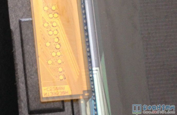 后来拆开看,屏左边一玻璃芯片坏了,用手按下就正常,型号是NT39230H-2508A。好在这个屏两边都有“耳朵”,拿掉坏的一边耳朵就好。