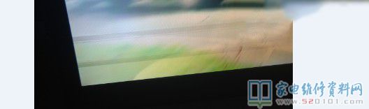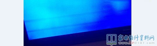 这台创维55E70RD送修时屏亮一下黑屏,换高压板没解决问题,后来换4根灯条。由于在操作过程中失误,导致在不接任何信号的情况下开机,屏幕下面有蓝背景上2条2CM,透明带,像流星划过的痕迹,从左到右,到离右边10CM处消失,也就是说右边10CM正常 。