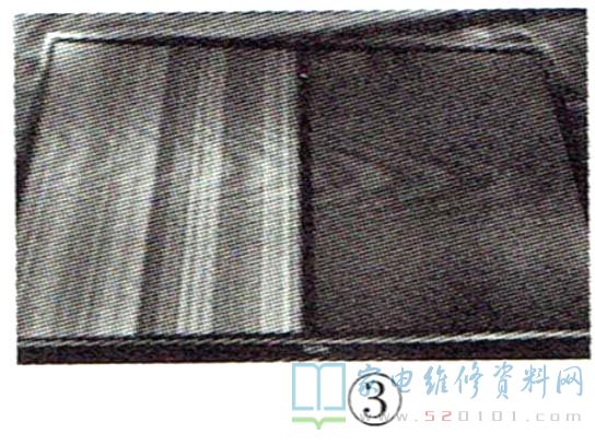 由于市售的Flash存储器是空白的,即更换U6后无法通过USB端口进行升级或者强制升级,这时只能采用离线烧录的方法(一般支持二进制的BIN数据),数据需从正常同型机中读取获得。需注意的是,本型彩电配屏型号较多,不同配置所对应的升级数据也是不同的,若选用的升级数据错误,则会出现图3、图4所示光栅。
