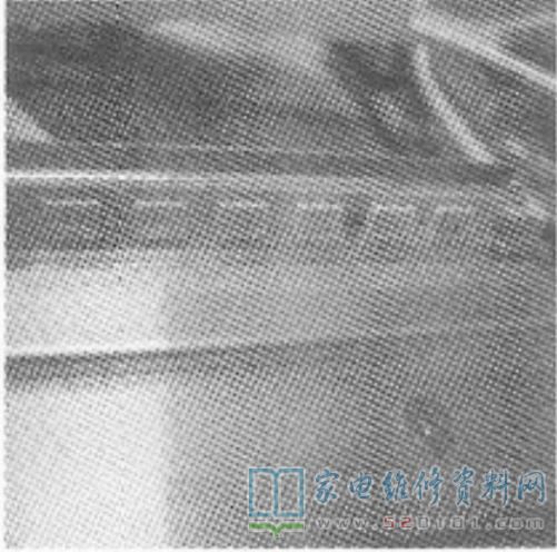 开机一段时间后屏不亮,故障原因应该是电源部分、背光部分或屏内部的LED灯损坏。打开后盖,发现背光也不亮。测量电源板输出电压都正常,说明电源没问题。进一步检查背光驱动电路和屏内LED灯。该机背光驱动电路主要由振荡调制电路、驱动输出电路、升压电路组成,检修时按以下思路进行:1.查供电是否正常; 2.查背光控制是否正常;3.查背光亮度控制是否正常。检查背光驱动输出插座CN03的CC1-CC4、CN04插座的CC5-CC8直流电压为56V左右,交流电压为3.6V左右,正常,最后怀疑LED灯有问题。当仔细拆开液晶屏后发现有一组LED灯已经烧黑,如图1所示。