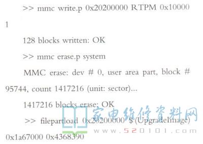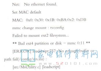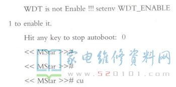 上述信息说明DDR、EMMC检测正常,并且引导程序已运行,但提示主程序运行失败,看来需升级主程序。自动升级主程序的方法如下:按住键盘上的“回车”键不松手,给电视机交流.上电,进入控制台,输入“cu"后回车,软件界面显示如下: