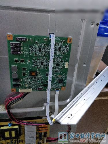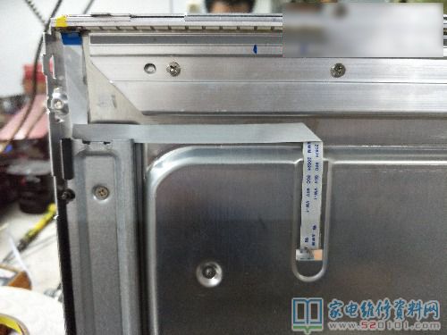 闲下来后,一步一步的将屏拆开,再用测试仪分别对灯珠测试,都正常,最后再在无屏状态下通电试机,发现只有左路灯条有瞬间发亮,心想难道是恒流板坏了?得进一步确认,又将会亮的那一路连接到另一个接口试机,灯还是会亮,得出结果是板子没坏。再多次对二路灯进行对比测试,还是一样,测排线,也正常,最后还是怀疑是排线问题,因手上无此配件,于是找来一根DVD激光头24P排线,与旧的对比,排距刚刚刚,只要将多余的剪除就行,结果如图所示。