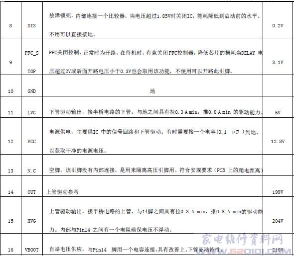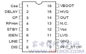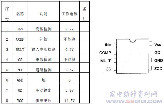 JSK4260-050 PFC电路的核心元件为IC1(L6562D),该芯片脚位功能如下: