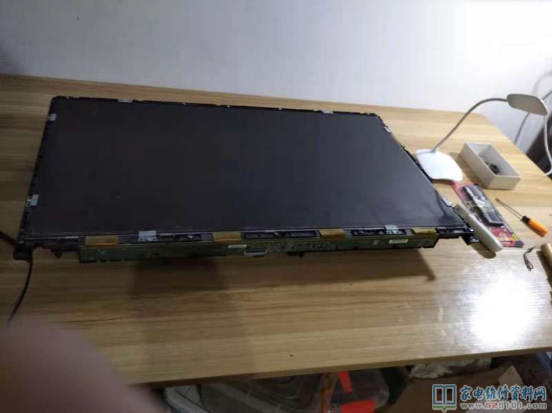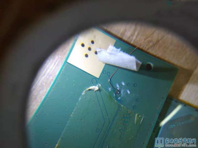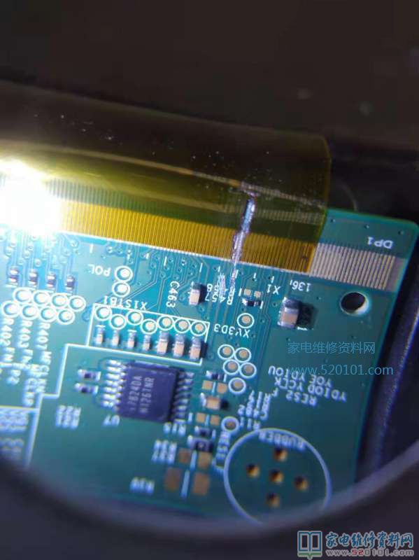 接修一台创维32E350D液晶电视,故障表现为惠普,拆开机器测量VGL与VGH电压正常,拆屏时发现右最边那个COF打火,用小刀片清理后,发现烧到位置是VGL与VGH极,VGH极有两条并接的,只断了一条,VGL也断了一条,飞VGL线后,试机正常。Y型号是RM76153FJ-OAI。