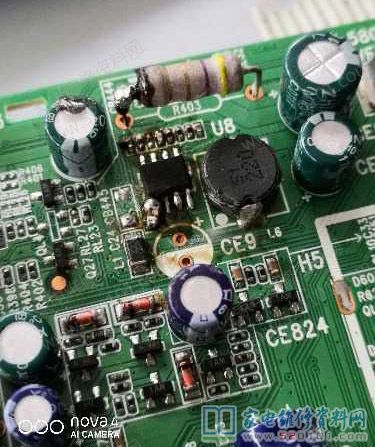 由于确定了故障范围,感觉离故障真相越来越近了,把指针表调到蜂鸣档,3脚线路找下去,功夫不负有心人啊,原来真凶是面板指示灯板5V处小电容短路造成,焊下来重新换上一颗,再开机,1484再也不烫手了,故障修复。