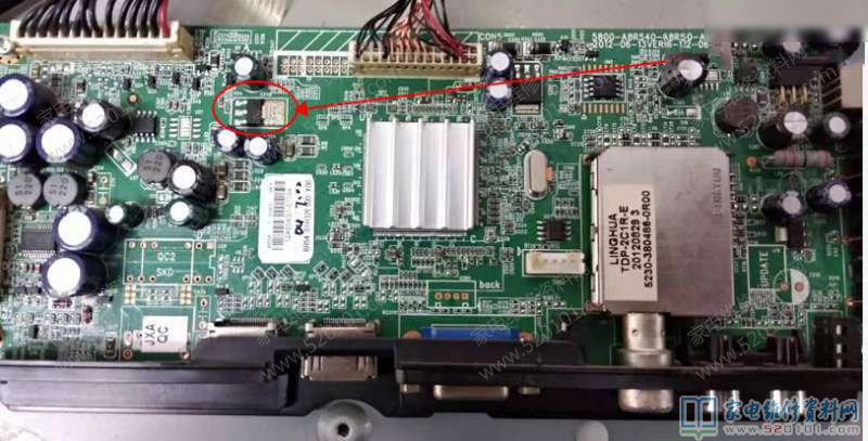 创维32E500E液晶电视不开机的故障维修 2021-03-30 17:03:48 阅读 534 次 评论 0 条 摘要: 接修一台创维32E500E液晶电视(8R54机芯),故障表现为通电指示灯绿灯亮,时而开机时而不开机,并自动关机。拆开机器经查,是下图中红圈标注的一个1117稳压芯片性能不良导致的,更换后故障修复。 接修一台创维32E500E液晶电视(8R54机芯),故障表现为通电指示灯绿灯亮,时而开机时而不开机,并自动关机。拆开机器经查,是下图中红圈标注的一个1117稳压芯片性能不良导致的,更换后故障修复。 版权声明:本文为转载文章,版权归原作者所有,欢迎分享本文,转载请保留出处! 点赞 分享: PREVIOUS:海信LED50K20JD液晶通电不开机但蓝灯亮的故障维修 NEXT:TCL液晶MT5507-PB775主板USB2.0兼容RS232接口电路 文章导航