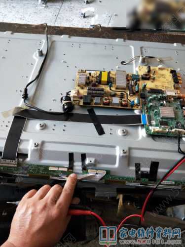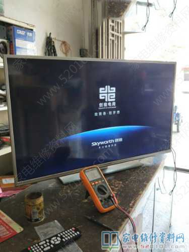接修一台创维42E5ERS液晶电视,开机电源灯亮,按频道键电源灯灭,屏幕显示暗蓝无字符,拆机观察背光亮,12V,24V正常,重新拔插数据线无反应,初步判定驱动板或数据问题。再看和屏连接处是用排线把两块板连在一起的,把排线拔下开机,屏幕一边显示正常一边白屏。好吧,之前判定失误。
