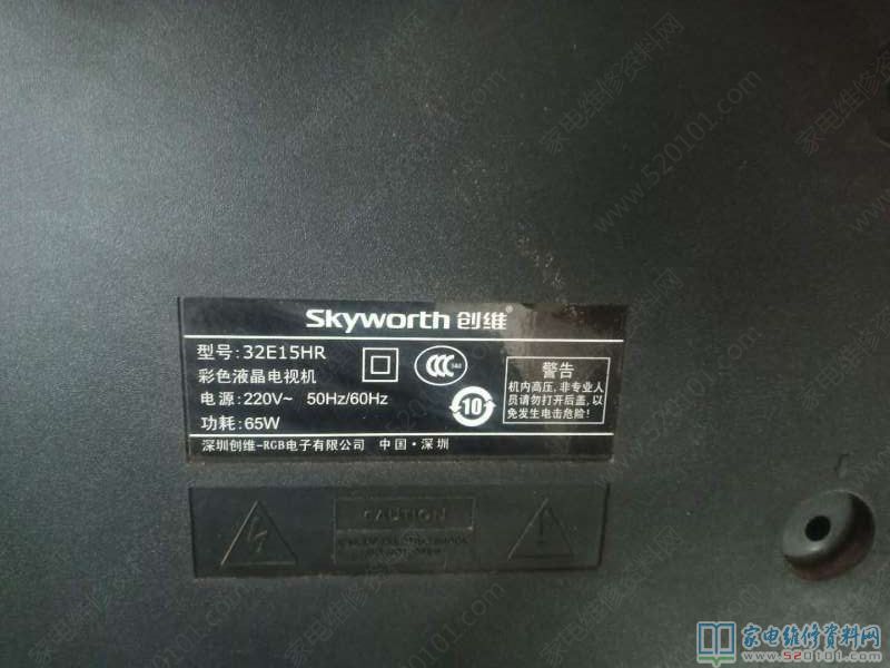 接修一台创维32E15HR液晶电视,这台机器的故障表现为开机时出现创维字母SKYWORTH后显示视频时重启反复,该电视按键是触摸按键,除信号源灯不亮其他按键指示灯亮,拆开机器发现主板是5800-A8R210-0001 VER00.01,电源168P32EM-01。首先用万用表测电源板5V,12v,24v正常只有45v电源不问在40v至45摆动,想想电视触摸按键指示灯不应该一直亮不正常,拔下按键排线后,电视启动正常,拆下触摸按键面板用万用表二极管档测发光二极管发现信号源指示灯二极管只有0.016v,其他几个都是0.85v怀疑短路,因没有这样的发光二极管,将其拆掉不,再开机启动正常故障排除。