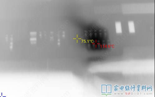 用隔离法修复创维55G6液晶电视图像重影故障 2021-08-17 05:19:24 阅读 1190 次 评论 0 条 摘要: 接修一台创维55G6液晶电视,故障表现为图像重影,于是用隔离软排线法进行修复,效果还行,不过屏幕在白色背景下能看到水平波纹,中间能看到左右两边有分界线,先试两天没问题再给用户,至于能用多久那就看运气了。 接修一台创维55G6液晶电视,故障表现为图像重影,于是用隔离软排线法进行修复,效果还行,不过屏幕在白色背景下能看到水平波纹,中间能看到左右两边有分界线,先试两天没问题再给用户,至于能用多久那就看运气了。 如上图所示,有问题的半屏温度一百多度,正常的半屏不到70度。 版权声明:本文为转载文章,版权归原作者所有,欢迎分享本文,转载请保留出处! 点赞 分享: PREVIOUS:现代LED42H35D液晶电视灰屏的故障维修 NEXT:长虹UD42B6000iD液晶电视观看1小时左右会自动重启 文章导航