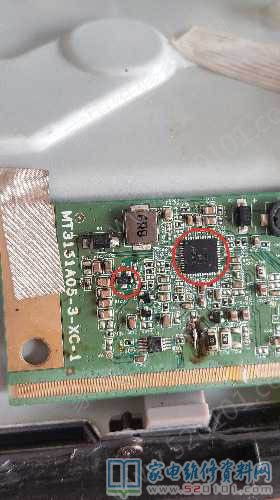 接修一台32LED360液晶电视,故障表现为是不开机,按开机指示灯灭不开机,直接拆机,测5V、12V、24V正常,按开机电压就掉了,明显是保护了,先断开背光板,还是一样保护,这个是电视背光可以单独拆掉的,拔掉屏线电压正常了,应该是逻辑板有短路,然后用红表笔接地测个各电容,测到C213阻值偏小,旁边一堆电容都是一样,最后逻辑板保险接3v电流1A烧机,发现这个C213发烫,拆除就不短路了,以为是捡钱活。开机试机图像闪一下慢慢的变灰屏,看来逻辑板还有问题,主要是这逻辑板是和屏一起的。不能更换,只能修了。