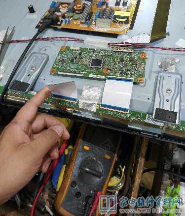 这种情况用隔离法以前修复多台,信心满满,取几毫米透明胶带隔离左进屏排线,一段一段的隔离开机试机故障一样,有加宽胶带还是没有成功。