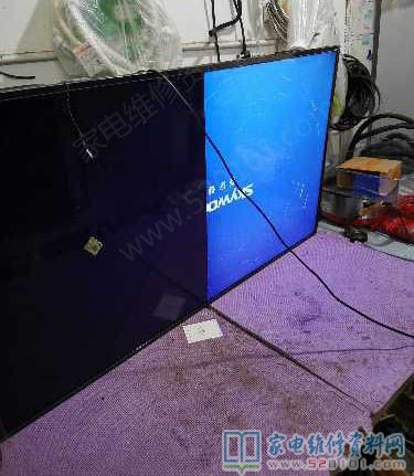 接修一台创维50M5液晶超高清电视,故障表现为灰屏,用户说刚开拿到官方售后弃修,说屏坏。在我维修部里,拆开后盖查看逻辑板进屏有两进屏排线,当取消左进屏排线开机试机右半幅画面正常亮屏。