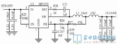 (2)STBPower_5V供电经U3转换成3V3_STB,供给主芯片U13及其复位电路等;