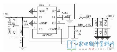 如图所示,电源板送来的12V供电经U89(AOZ1051)的DC-DC变换,得到USB5V,用作主板上USB电路的工作供电。