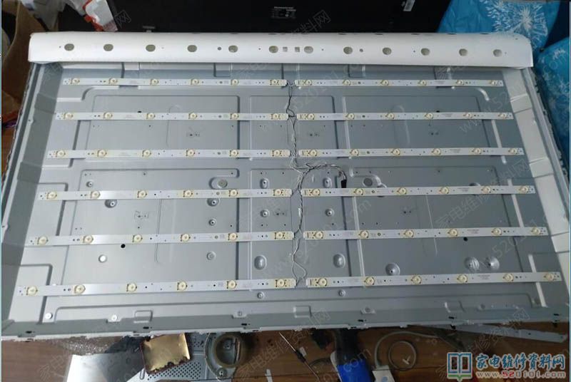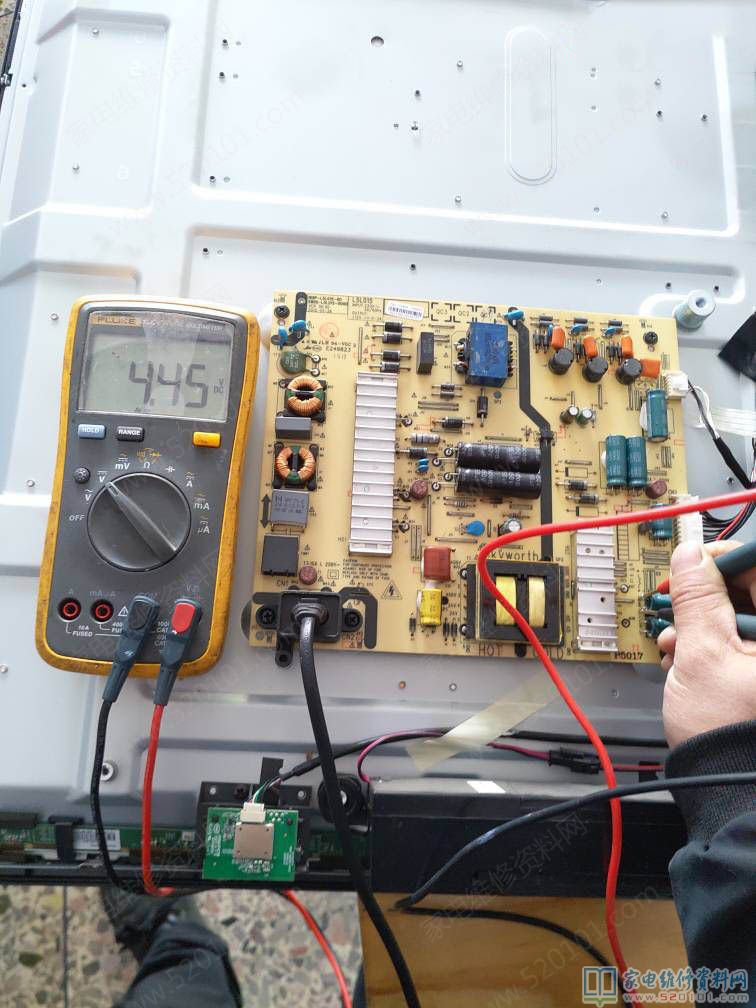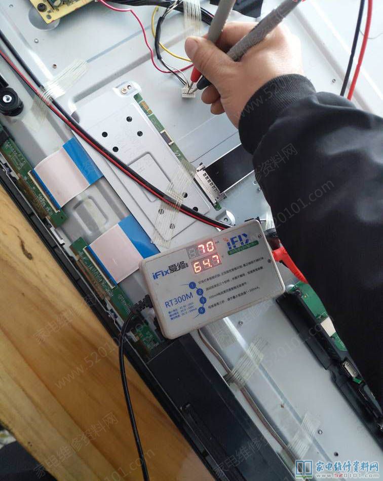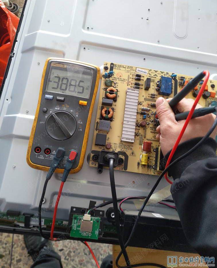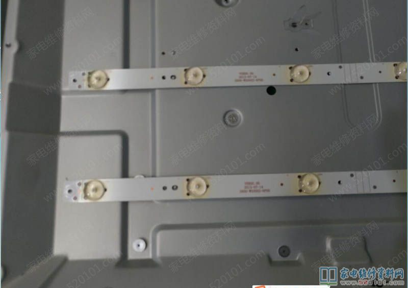 接修一台创维50E6100液晶电视,故障表现为不开机指示灯红绿交替闪烁,查电源12v只有4.4V,PFC 388.5v判断电源板有问题,检查稳压电路正常,替换431和1716故障依旧,用外接12v试主板开机绿灯,灯条测试仪点上可以看到正常图片,判断电源板问题,修不了只好买个电源板坏了,板到了装上去试机故障依旧,联系卖板的,他说灯条有问题,灯条测试过3组电压一样,也可以点亮。于是换了一个板回来再试故障依旧,后来打开屏幕看灯条全部发黄了,这种板灯条保护了会把主板供电也拉低造成误判,希望同行注意。