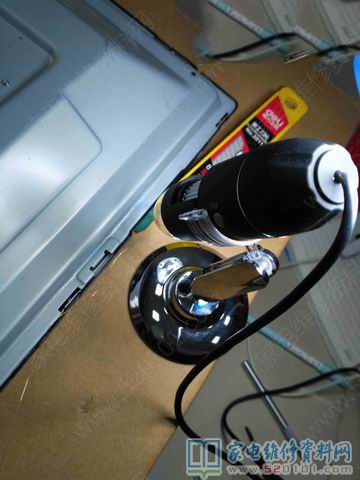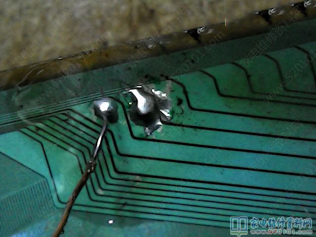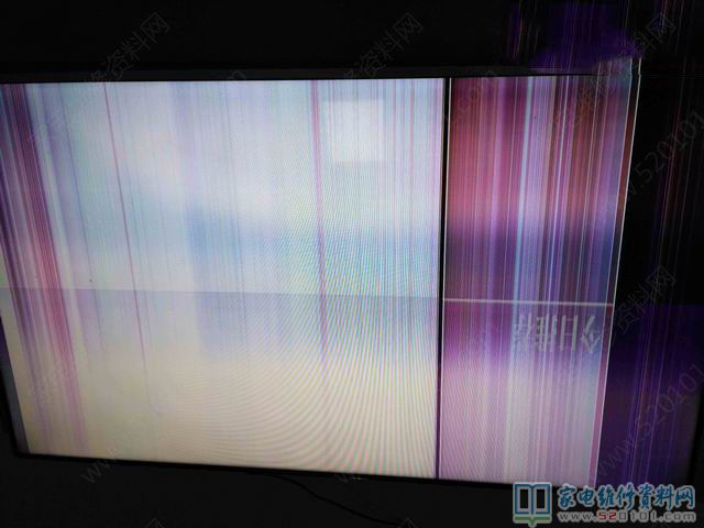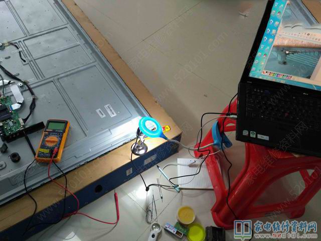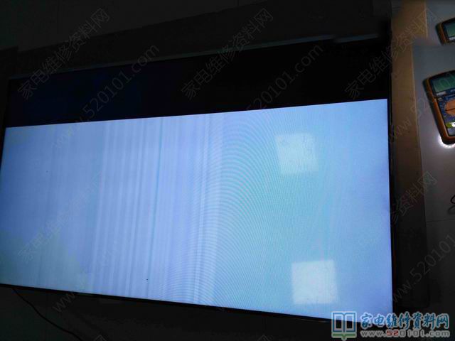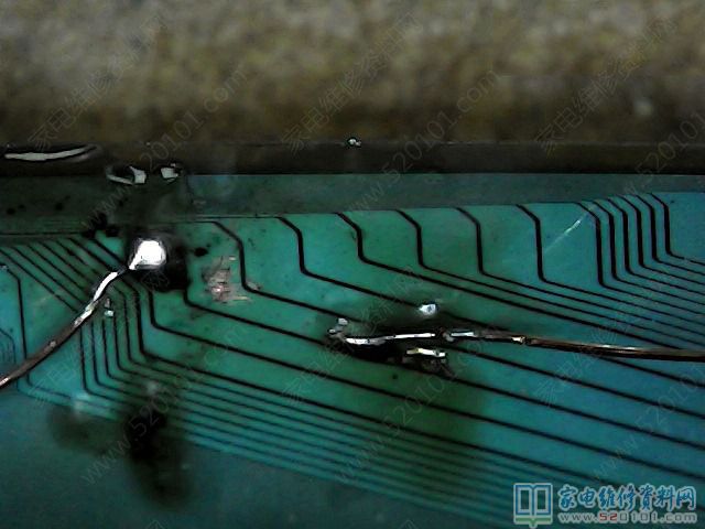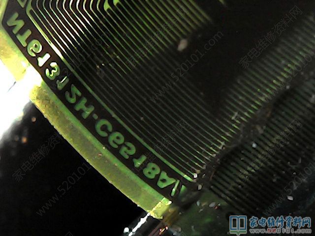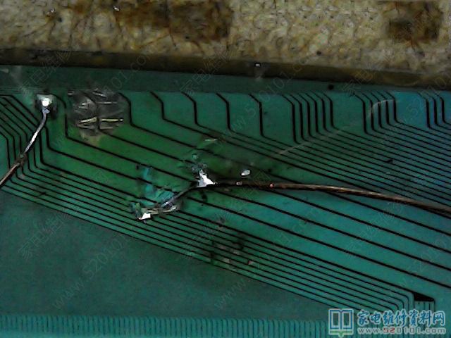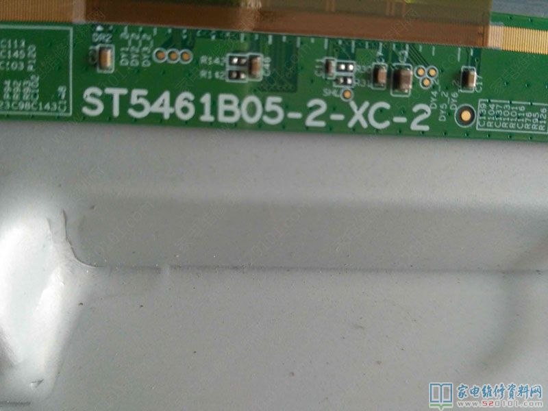 一台创维55X5液晶电视,故障为花屏,此机器采用的屏型号是华星光电的屏,逻辑板在左边板上(ST5461B05-2-XC-2),只有右边有4个Y轴模块,Y轴模块是NT61312H-C6518A,这台机年前送压屏那边修过的,用了个把月又出问题了,拆屏后,发现下两个边耳人家已经飞了线的,是VGH点, 再测上边两个边耳VGH点也没电压,还有VGL点只最下那个有-6V,没办法,再飞线,可是共7个点都飞完了,还不行,准备弃修了。发些图片给同行参考一下。