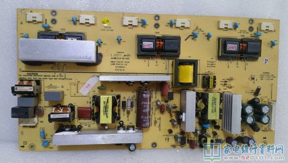 我分别把各电路板放室外在拿回家试机,发现电源板有问题,出现故障时测量各输出电压正常,当测量PFC电容时电压在370-380V变化,终于找到罪魁祸首了,先看是不是pfc部分接触不良然后再查配件,结果是L64PFC电感没有完全开焊,形成了一个接触电阻,导致PFC供电不稳,影响干扰背光电路稳定性,当温度低时接触电阻变大,当温度升高时接触电阻变小,热胀冷缩使电路板产生变形,补焊后pfc电压升到386V,送给用户没有再出现问题。