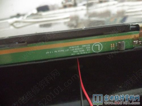 创维LC470EUN-SFF1液晶屏Y轴引起灰屏的解决方法 2022-01-03 23:08:33 阅读 1164 次 评论 0 条 摘要: 创维液晶电视采用LC470EUN-SFF1屏出现灰屏,一般是由Y轴短路引起,如下图所示,用透明胶断开此处即可,希望帮到各位同行,仅供参考。 创维液晶电视采用LC470EUN-SFF1屏出现灰屏,一般是由Y轴短路引起,如下图所示,用透明胶断开此处即可,希望帮到各位同行,仅供参考。 版权声明:本文为转载文章,版权归原作者所有,欢迎分享本文,转载请保留出处! 点赞 分享: PREVIOUS:TCL L32F11液晶电视开机困难的故障维修 NEXT:先锋LED-32B500液晶电视有声音无图像的故障维修 文章导航