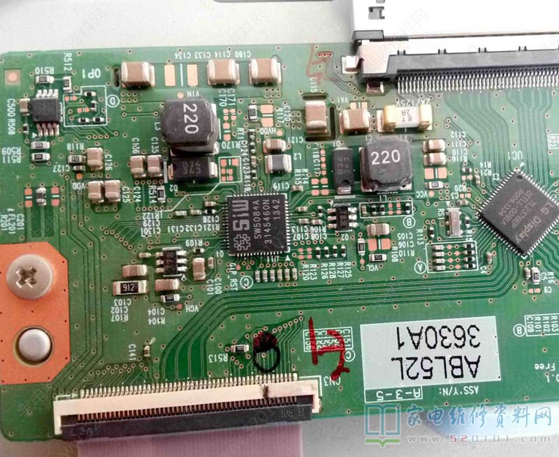 创维49E730A液晶电视灰屏的故障技改方法 2022-01-15 00:31:52 阅读 1356 次 评论 0 条 摘要: 接修一台创维49E730A液晶电视,故障表现为灰屏,有伴音有背光。配的是LG的LC490DUN屏,拆机测VGA电压没有,如下图所示,在图3中黑圆圈标记处下面垫纸后成功点亮,图像效果还可以。仅供大家参考。 接修一台创维49E730A液晶电视,故障表现为灰屏,有伴音有背光。配的是LG的LC490DUN屏,拆机测VGA电压没有,如下图所示,在图3中黑圆圈标记处下面垫纸后成功点亮,图像效果还可以。仅供大家参考。 版权声明:本文为转载文章,版权归原作者所有,欢迎分享本文,转载请保留出处! 点赞 分享: PREVIOUS:创维42E500E液晶电视(8R57机芯)通电绿灯亮但不开机的维修 NEXT:长虹55U1(LMBE)液晶电视ZLS73Gi机芯二次不开机的维修 文章导航