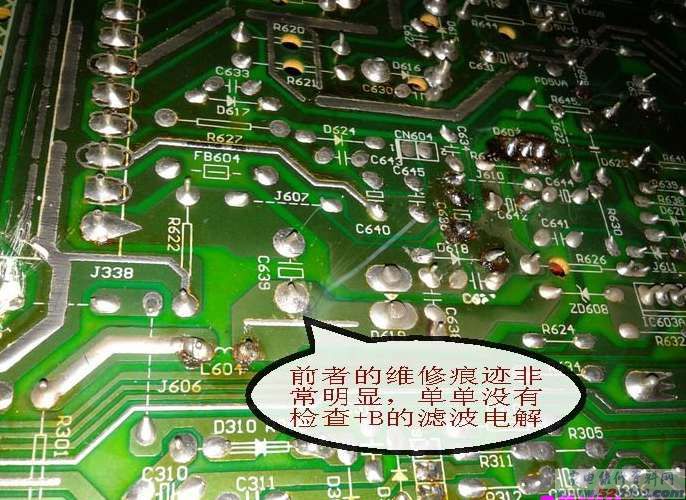 创维29T95HT(6T18机芯)开机有高压,黑屏且自动关机(图) 2013-05-01 18:27:55 阅读 286 次 评论 0 条 摘要: 接修一台创维6T1829T95HT,开机有高压,黑屏,稍后自动关机,测得开机行管集电极波形没有发现负载有短路的现象,只是峰值小了正常峰值许多,测得+B电压110V左右,这样行管集电极波形峰值减小也是情理之中,黑屏应该 接修一台创维6T18 29T95HT,开机有高压,黑屏,稍后自动关机,测得开机行管集电极波形没有发现负载有短路的现象,只是峰值小了正常峰值许多,测得+B电压110V左右,这样行管集电极波形峰值减小也是情理之中,黑屏应该是行反馈的同样减小的缘故,电压降低首先应该检查+B的滤波电解,结果就是该电容失效了. 版权声明:本文为转载文章,版权归原作者所有,欢迎分享本文,转载请保留出处! 点赞 分享: PREVIOUS:创维29T61HD(6D72机芯)图像有斜纹干扰(图) NEXT:创维29T83HT(6T18机芯)图像异常的检修(图) 文章导航