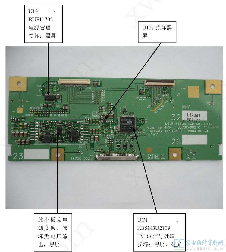 32寸LG屏驱动板维修资料 2017-08-27 00:49:44 阅读 456 次 评论 0 条 摘要: 32寸LG屏驱动板(屏供电12V)常见故障分析如下图所示 32寸LG屏驱动板(屏供电12V)常见故障分析如下图所示 版权声明:本文为转载文章,版权归原作者所有,欢迎分享本文,转载请保留出处! 点赞 分享: PREVIOUS:30寸LG屏驱动板维修资料(LC300W01-B5) NEXT:32寸LG屏驱动板维修资料(LC320WX3) 文章导航