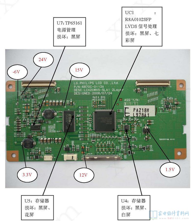 42寸LG屏驱动板维修资料(LC420WX5-SLA1) 2017-08-27 21:13:04 阅读 230 次 评论 0 条 摘要: LC420WX5-SLA1 LG屏逻辑驱动板(屏供电12V)常见故障分析如下图所示 LC420WX5-SLA1 LG屏逻辑驱动板(屏供电12V)常见故障分析如下图所示 版权声明:本文为转载文章,版权归原作者所有,欢迎分享本文,转载请保留出处! 点赞 分享: PREVIOUS:37寸LG屏驱动板维修资料(LC370W01-A5K1) NEXT:42寸LG屏驱动板维修资料(LC420WX7) 文章导航