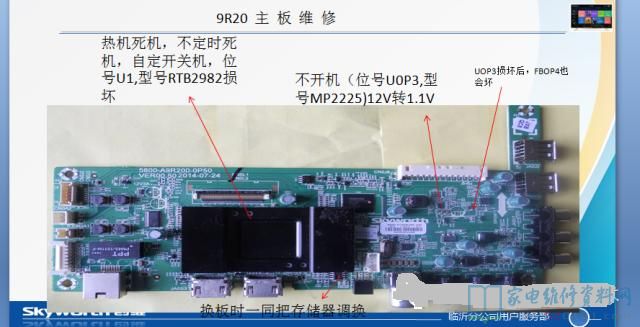 一、热机死机、不定时死机、自定开关机、位号U1,型号RTB2982损坏。