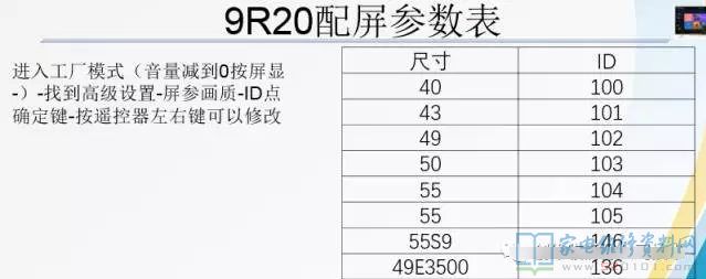 创维9R20机芯配屏参数表 2018-05-02 19:47:47 阅读 600 次 评论 0 条 摘要: 进入工厂模式(音量减到0按屏显-),找到高级设置-屏参画质-ID点确定键-按遥控器左右键可以修改。 进入工厂模式(音量减到0按屏显-),找到高级设置-屏参画质-ID点确定键-按遥控器左右键可以修改。 版权声明:本文为转载文章,版权归原作者所有,欢迎分享本文,转载请保留出处! 点赞 分享: PREVIOUS:TCL彩电LTA460HB09液晶屏开机瞬间自动关机 NEXT:创维9R02机芯三合一板维修图解 文章导航