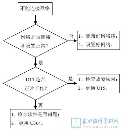 对于本故障,先检查网络是否连接好、设置是否正常,然后考虑隔离变压器U15是否损坏、U15输出到U304通道是否正常(对地有无短路),最后考虑主芯片U304、软件问题。