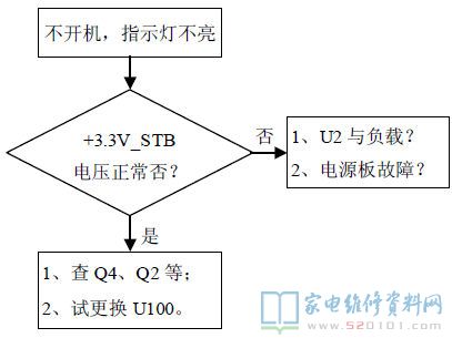对于“不开机,指示灯不亮”故障,首先检查+3.3V_STB是否正常,然后检查+3.3V_STB的负载是否有短路现象,最后检查一下指示灯控制电路是否有故障等。