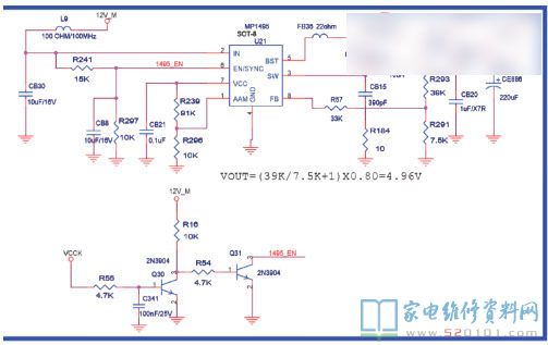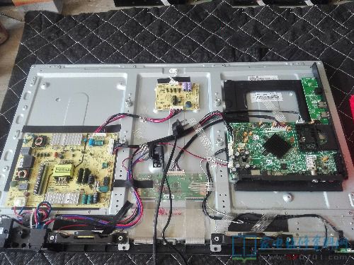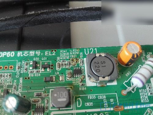 接修几台创维液晶电视32E680F通电蓝色灯亮,屏幕无显示,背光也不亮,用手电筒照屏幕也没有图像,按键也没什么反应。这是旅馆送来修的电视,三台机子故障现象一样。拆开机器检查电源板各电压输出正常,此故障出在主板上,是U21虚焊所致,U21丝印号为ACSE,看电路图是12V转5V DC器件,用热风枪补焊后故障排除。