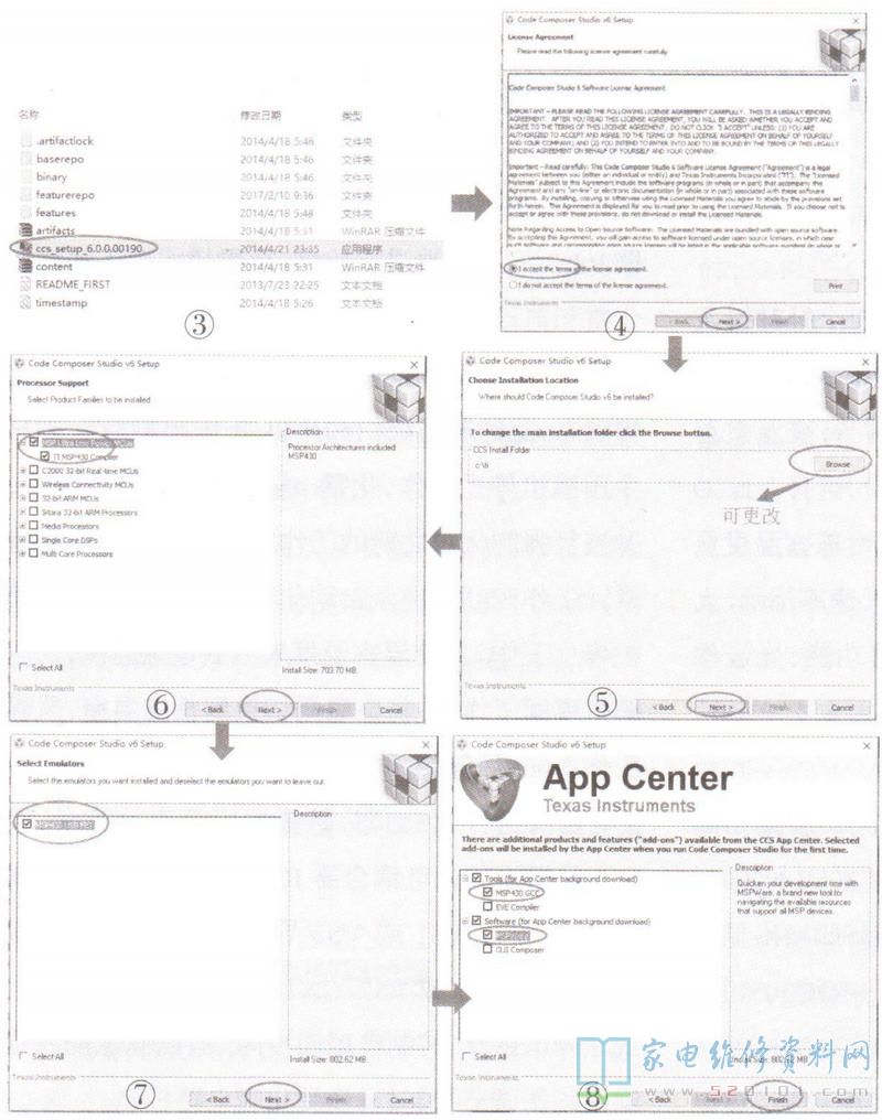 虽然该烧录小板无需安装单独驱动,但需安装CCS6.0编程器软件,具体安装步骤如图3~图8所示。
