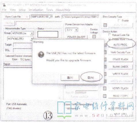 (4)点击“AUTO PROG"按钮,在跳出来的警告框中选择“否”,如图13所示,此时系统进入烧录状态,如图14所示。