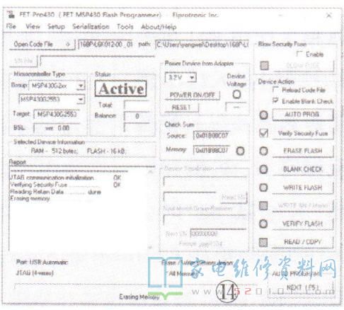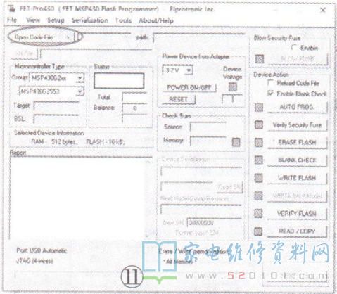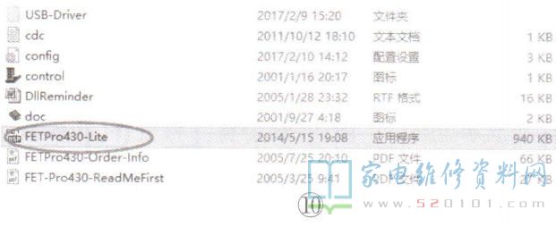 (1)选择“FETPro430Lite.exe"软件,如图10所示,双击打开,出现烧录界面,如图11所示。