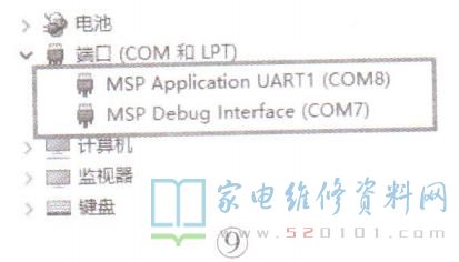 待CCS6软件安装成功后,连接,上烧录小板,电脑的设备管理器中就会显示对应端口,如图9所示。