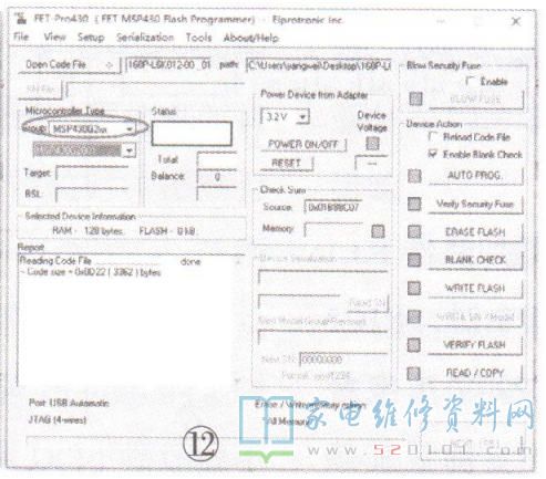 (2)先点击“Opencodefile",选择对应的txt数据,然后点击芯片群组“Group" ,选择MSP430G2XX,如图12所示。