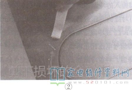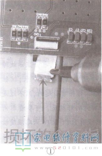 经测量,由于金手指的问题,导致灯条中一组灯珠得不到供电,从而引起背光电路保护,出现背光-亮即灭现象。解决方法:以最短的金手指的长度为准,用剪刀将多余的金手指部分剪去,如图2所示。将处理后的金手指插入背光板的供电插座并锁紧,上电试机,故障排除。