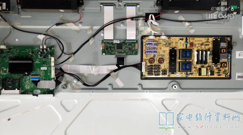 接修一台创维43G7200液晶电视,故障表现为偶尔自动关机。上电,测电源组件输出的12V及PFC电压均正常,采用U盘强制软件升级,故障依旧。接下来测主板上各路电压,均正常;检查以Q56为核心的复位电路及时钟振荡晶体,未发现异常,测试主板上KEY1.KEY2端电压,发现在无任何操作时,KEY2端电压波动。断开键控板,在路测量主板上KEY1.KEY2端对地电阻正常且稳定,怀疑键控板有漏电现象。经查,按键板上电阻EOK1对地漏电。割断漏电线路,焊接EOK1后开机,故障排除。