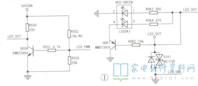 创维50F5液晶电视(8H20机芯)二次开机指示灯一直红灯 2022-02-25 18:07:09 阅读 974 次 评论 0 条 摘要: 接修一台创维50F5液晶电视(机芯:8H20),二次开机后图像、声音及控制均正常,但指示灯一直为红灯,不能变为绿灯。根据故障现象分析,判断指示灯电路有问题,相关电路如图1所示。开机测量LED pwM信号电 接修一台创维50F5液晶电视(机芯:8H20),二次开机后图像、声音及控制均正常,但指示灯一直为红灯,不能变为绿灯。根据故障现象分析,判断指示灯电路有问题,相关电路如图1所示。开机测量LED pwM信号电压为0.7V,但LED_ OUT端电压一直为3.3V,怀疑三极管Q0S8损坏。更换Q0S8后开机,故障排除。 版权声明:本文为转载文章,版权归原作者所有,欢迎分享本文,转载请保留出处! 点赞 分享: PREVIOUS:康佳LC32DT68C液晶电视灰屏的故障维修 NEXT:创维50G3液晶电视(8H52机芯)二次不开机的故障维修 文章导航