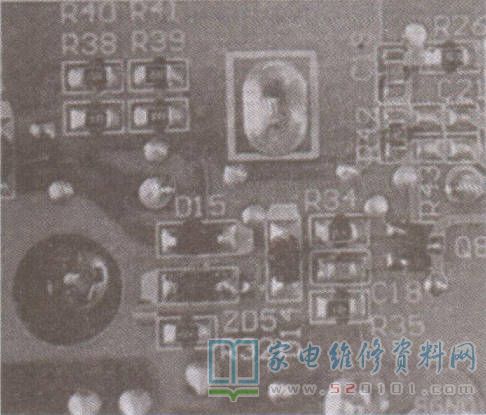 创维42E360E液晶电视(8R32机芯)不开机的故障维修 2022-02-25 19:49:56 阅读 768 次 评论 0 条 摘要: 接修一台42E360E液晶电视,机芯采用的是8R32,故障表现为三无。上电检测, 发现电源板(型号:168P-P42ETN-01)的12V输出电压只有3V ,24V输出电压只有6V。断电测量,开关电源负载 接修一台42E360E液晶电视,机芯采用的是8R32,故障表现为三无。上电检测, 发现电源板(型号:168P-P42ETN-01)的12V输出电压只有3V ,24V输出电压只有6V。断电测量,开关电源负载无过载现象,由此判断开关电源有问题。经查,24V过压保护电路中的二极管ZD5漏电,使开关电源在开机后就处于过压保护状态。ZD5为27V稳压二极管,如下图所示。更换ZD5后试机,故障排除。 版权声明:本文为转载文章,版权归原作者所有,欢迎分享本文,转载请保留出处! 点赞 分享: PREVIOUS:索尼KLV-40J400A液晶电视自动关机的故障维修 NEXT:创维43E2A液晶电视(8S48机芯)开机后灰屏的故障维修 文章导航