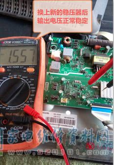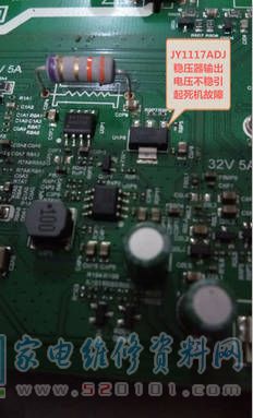 创维32E3000液晶电视花屏的通病故障维修 2022-02-27 18:15:03 阅读 1104 次 评论 0 条 摘要: 接修一台创维32E3000液晶电视,故障表现为花屏死机,上门检查开机又一切正常,用户告知机器时好时坏,有时开机就死机;果不其然,几分钟后突然花屏死机,按键遥控均不起作用,开盖检查,测量主电源各路输出都正常, 接修一台创维32E3000液晶电视,故障表现为花屏死机,上门检查开机又一切正常,用户告知机器时好时坏,有时开机就死机;果不其然,几分钟后突然花屏死机,按键遥控均不起作用,开盖检查,测量主电源各路输出都正常,逐往下测量,当测到U1P8稳压器(JY1117ADJ)时发现输入5V正常,输出电压很不稳定,在1.4V左右摆动,当低于1.3V时又出现死机故障,果断换上此稳压器后故障排除。 版权声明:本文为转载文章,版权归原作者所有,欢迎分享本文,转载请保留出处! 点赞 分享: PREVIOUS:用加热法修复TCL L32E9BD液晶电视指示灯闪烁不开机的故障 NEXT:海信TLM32E58液晶电视画面呈现负像的故障维修(图) 文章导航