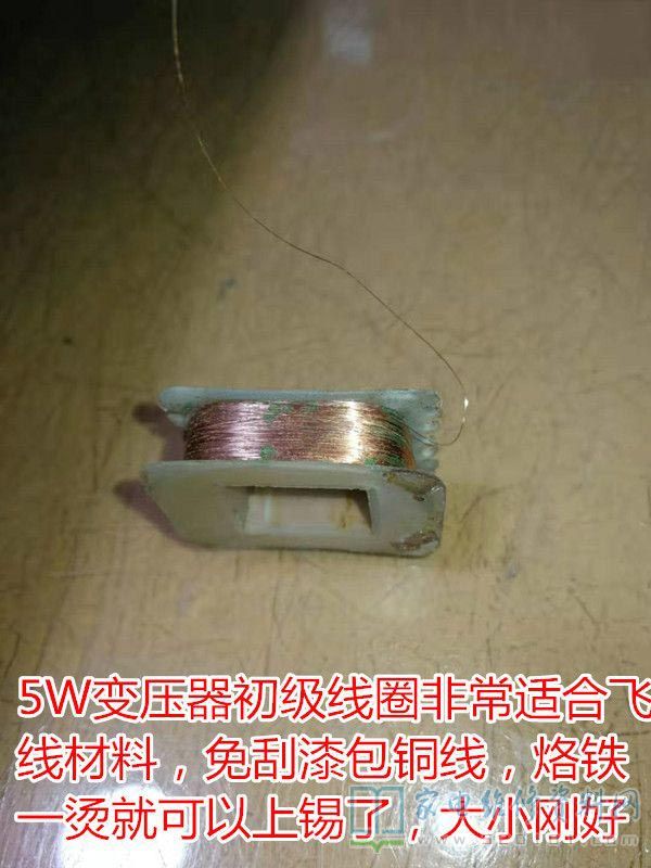 5W变压器初级线圈非常适合飞线材料,免刮漆包铜线,洛铁一烫就上锡了,大小刚好