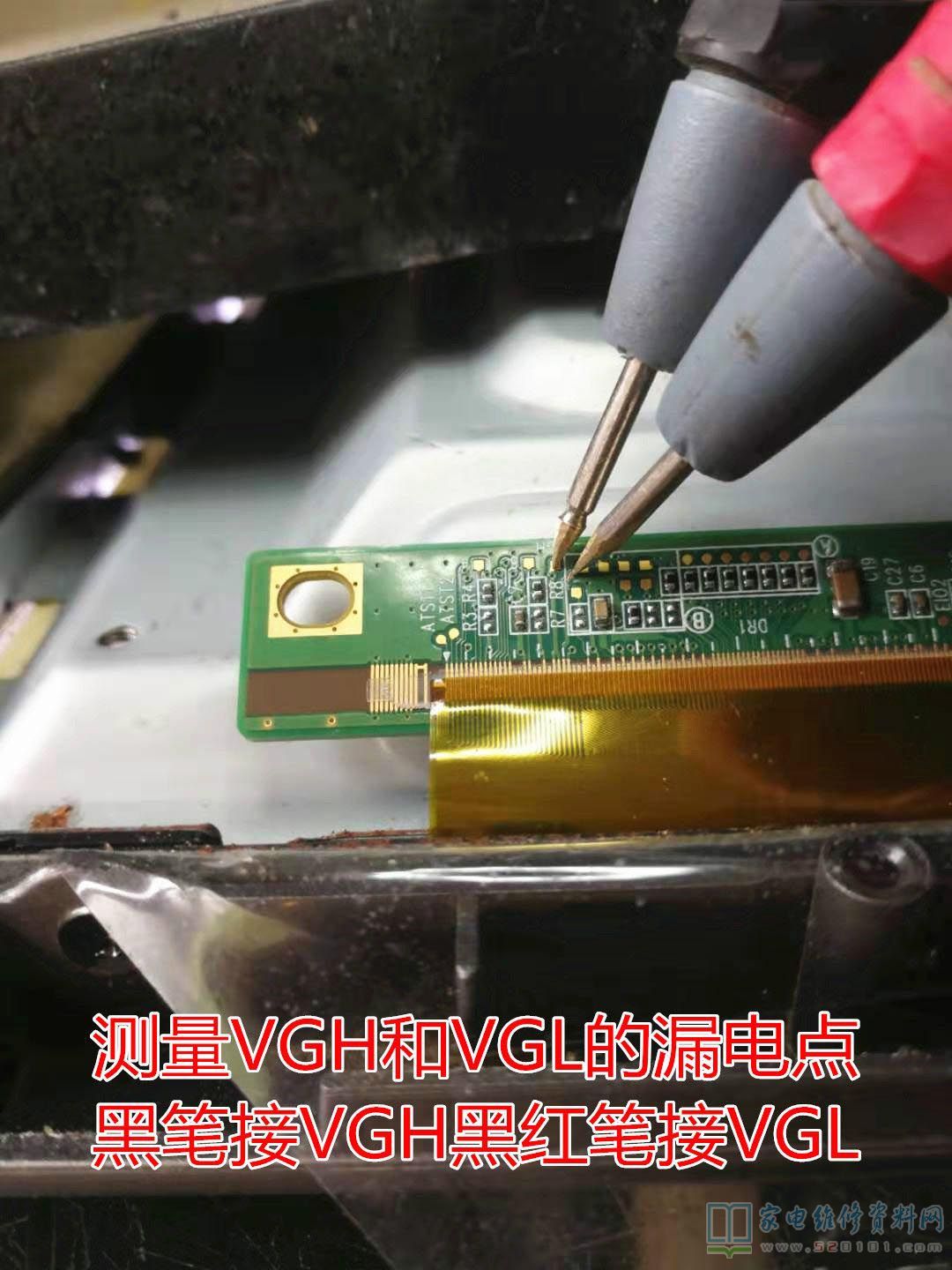 测量VGH和VGL的漏电点,黑笔接VGH黑红笔接VGL