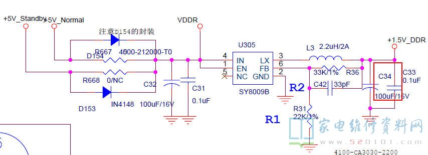 创维50E760A液晶电视通电红灯亮但不开机 2022-03-17 19:27:24 阅读 772 次 评论 0 条 摘要: 接修一台创维50E760A液晶电视(8S06机芯),故障表现为上电红灯亮不开机,通电后测量主板供电,发现U305输出电压只有1V,测其输入5V电压正常,手摸U305有温升,怀疑U305性能不良,但换新后故 接修一台创维50E760A液晶电视(8S06机芯),故障表现为上电红灯亮不开机,通电后测量主板供电,发现U305输出电压只有1V,测其输入5V电压正常,手摸U305有温升,怀疑U305性能不良,但换新后故障依旧。检查U305⑥脚FB端外接电阻R31、R36正常,检查输出端滤波电容,发现C34漏电,换新后故障排除。 附:创维8S06机芯E760系列液晶电路原理图 版权声明:本文为转载文章,版权归原作者所有,欢迎分享本文,转载请保留出处! 点赞 分享: PREVIOUS:创维47E760A液晶电视指示灯红灯亮不开机的故障维修 NEXT:创维32E760A液晶电视热机状态下花屏的故障维修 文章导航