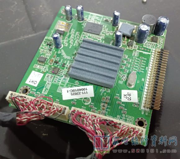 因倍频板坏没有12V进入逻辑板导致灰屏,于是到某宝上购买了一块倍频板装上后图象正常,但屏幕图像是倒的,于是将原板上的存储器与新买的板的存储器对调后,图象正常了。