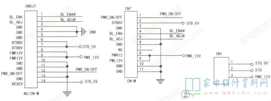 实际改装时,须根据电源板的供电输出接口选择接口CN7或CNOJ7。对于某些电源板,要在CN1处用跳帽短接以接通供电。