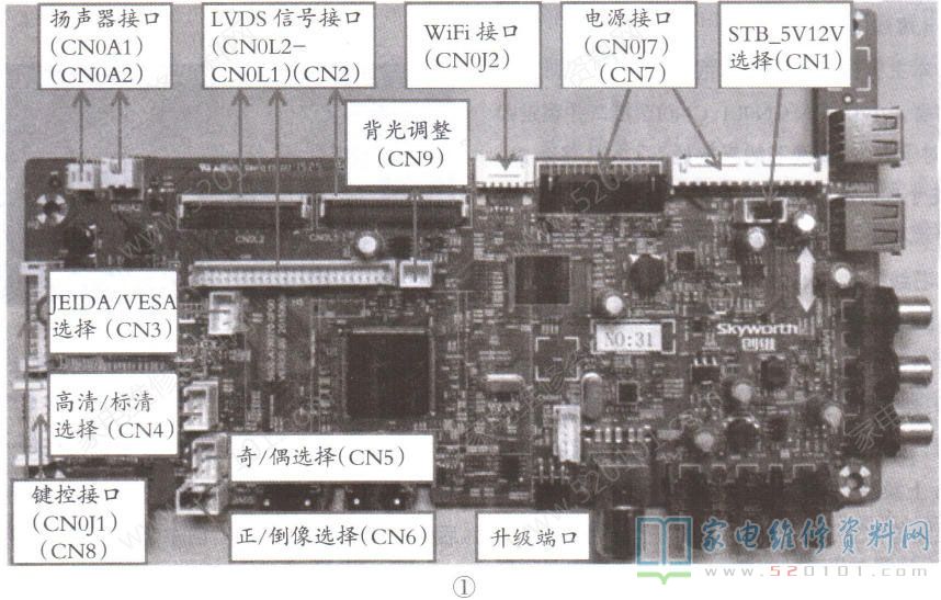 该机芯主板的CNOA1、CNOA2为扬声器或音响接口。