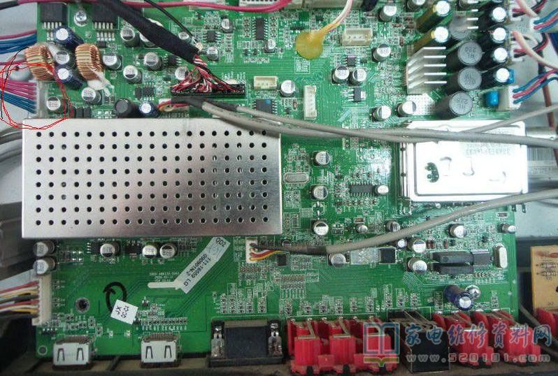 接修一台创维32L02RM电视,故障表现为开机三无,拆机检查5V电压为1.9V,指示灯暗红,拔下主板供电,测5V电压为5.03V,属于正常,怀疑主板问题,恰巧手头有一块同样主板,试机还是不行,这样把重点放在电源板上,怀疑是5V负载能力低下,更换滤波电容后故障修复(在散热片里面有一个此电容)。
