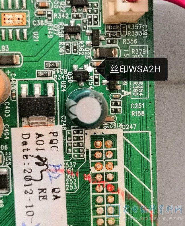 创维32E500液晶电视灰屏的故障维修 2022-05-20 05:16:43 阅读 978 次 评论 0 条 摘要: 最近接修一台创维32E500液晶电视,故障表现为开机屏幕灰屏,遥控开关机,声音都正常,本故障原因应该在主板逻辑板电路。仪表检测上屏供电只有8V,拔掉逻辑板排线12V正常,难道故障在逻辑板,用仪表也没扫到雷, 最近接修一台创维32E500液晶电视,故障表现为开机屏幕灰屏,遥控开关机,声音都正常,本故障原因应该在主板逻辑板电路。仪表检测上屏供电只有8V,拔掉逻辑板排线12V正常,难道故障在逻辑板,用仪表也没扫到雷,插上排线,发现Q30输入电压12V正常,输出电压8V,原机Q30是WSA2H贴片手上没有,于是用WSA5K代替,故障排除。 版权声明:本文为转载文章,版权归原作者所有,欢迎分享本文,转载请保留出处! 点赞 分享: PREVIOUS:长虹UD50B6000iD液晶电视三无不开机的故障维修 NEXT:海尔L32G1液晶电视开机屏幕亮一下黑屏的故障维修 文章导航