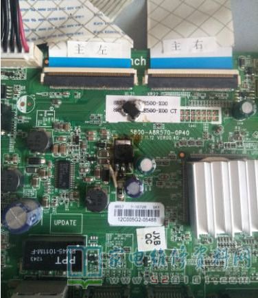 创维42E500E液晶电视花屏的故障维修 2022-05-24 17:59:19 阅读 746 次 评论 0 条 摘要: 接修一台创维42E500E液晶电视,故障表现是刚开机时图象声音都正常,大节10分钟左右突然喇叭发出沙沙的杂音,随后满屏出现花屏,然后就自动关机,拆盖测量主板各稳压片电压,电压显示都正常,当用表笔触碰到U24 接修一台创维42E500E液晶电视,故障表现是刚开机时图象声音都正常,大节10分钟左右突然喇叭发出沙沙的杂音,随后满屏出现花屏,然后就自动关机,拆盖测量主板各稳压片电压,电压显示都正常,当用表笔触碰到U24的1脚时,电视就会关机,拿开表笔时电视就自动开机,果断把U24更换后开机一切正常,故障修复。 版权声明:本文为转载文章,版权归原作者所有,欢迎分享本文,转载请保留出处! 点赞 分享: PREVIOUS:海信LED32EC260JD液晶电视通电蓝灯闪但不开机 NEXT:创维32E15液晶电视开机三无的故障维修 文章导航